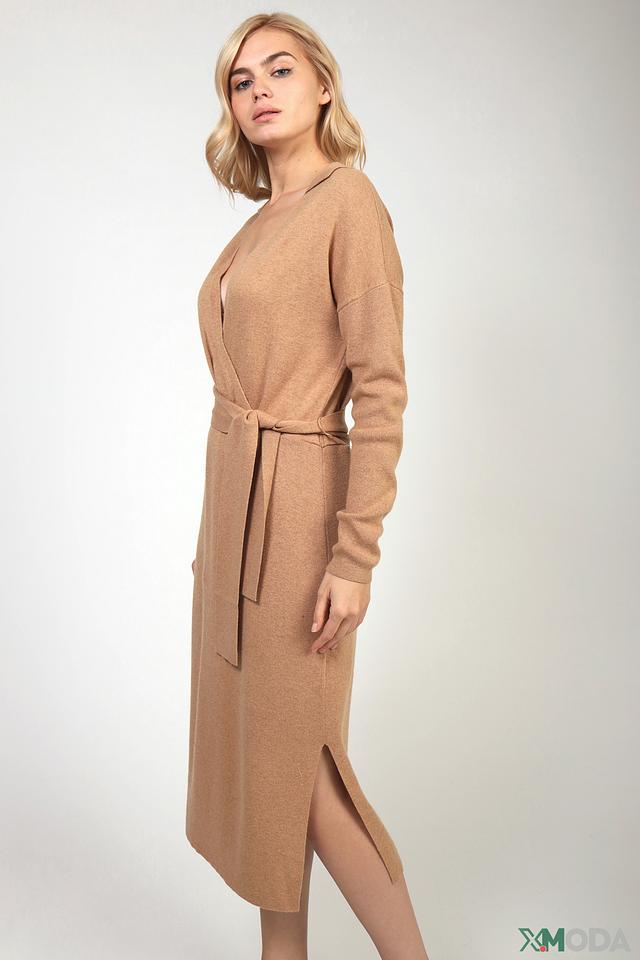 Платье Oui вязаное бежевое