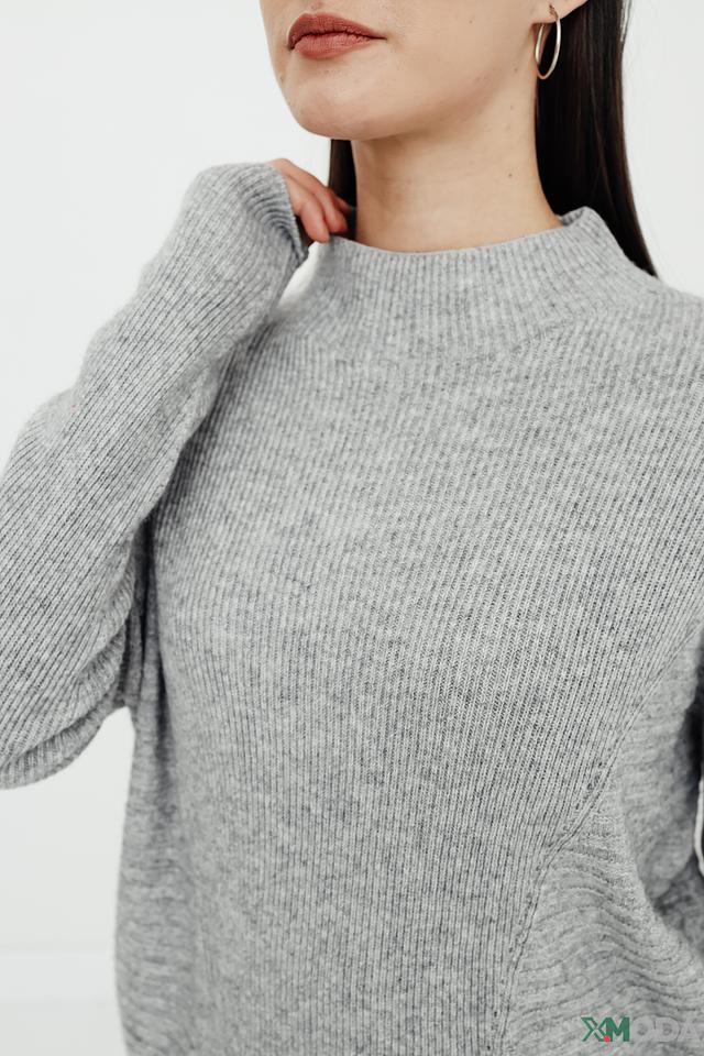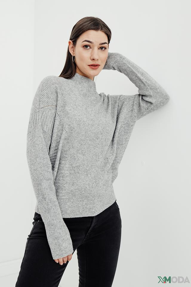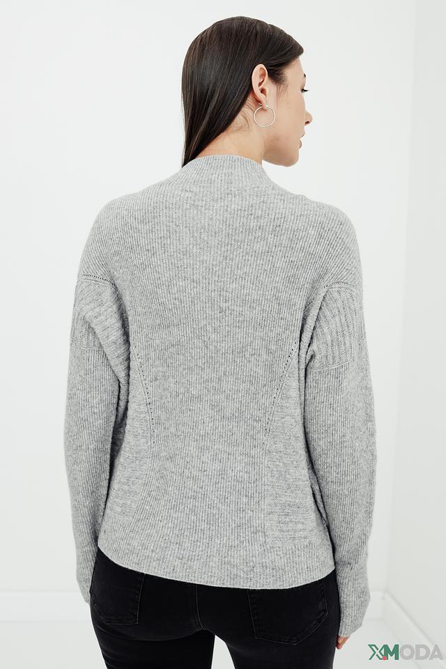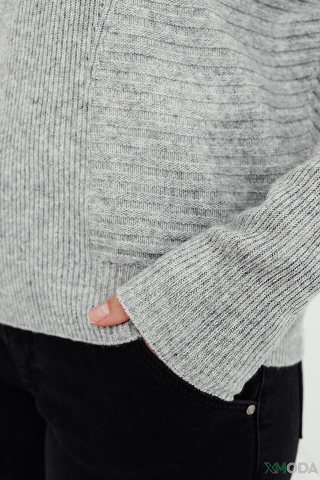 Пуловер имеет приятный серый меланжевый цвет, который легко сочетается с различными элементами одежды. Текстурная вязка придает изделию особый шарм и визуальный интерес. Высокий воротник обеспечивает дополнительное тепло и защиту от холода.