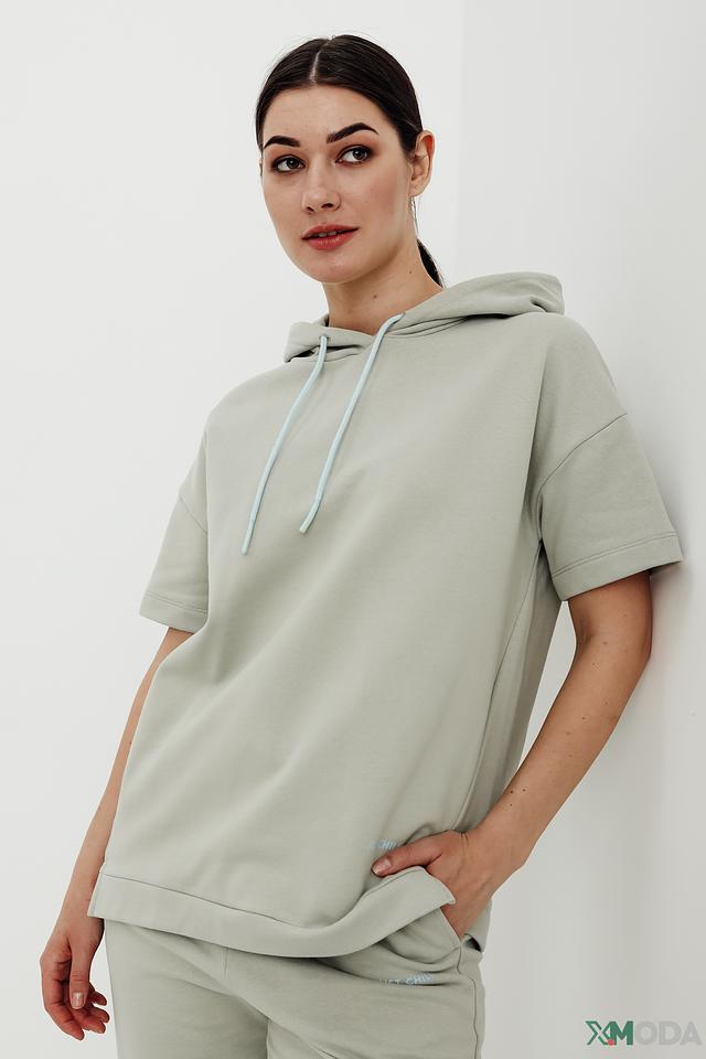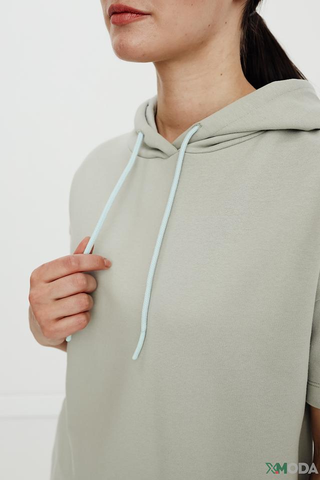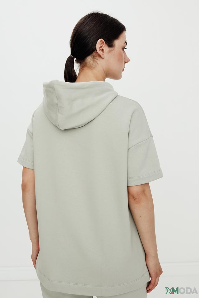 Стильный пуловер от Oui светло-серого цвета с короткими рукавами и капюшоном на шнурках. Изготовлен из мягкого хлопка с добавлением полиэстера для комфорта и долговечности. Состав: хлопок 95%, полиэстер 5%