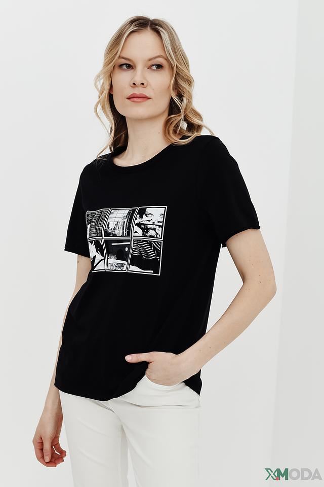 Чёрная футболка от Oui с оригинальным принтом в виде комикса. Изготовлена из 100% хлопка, обеспечивающего комфорт и воздухопроницаемость. Стильный и удобный вариант для повседневного образа. Состав: хлопок 100%
