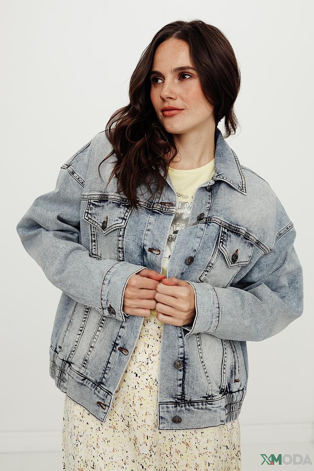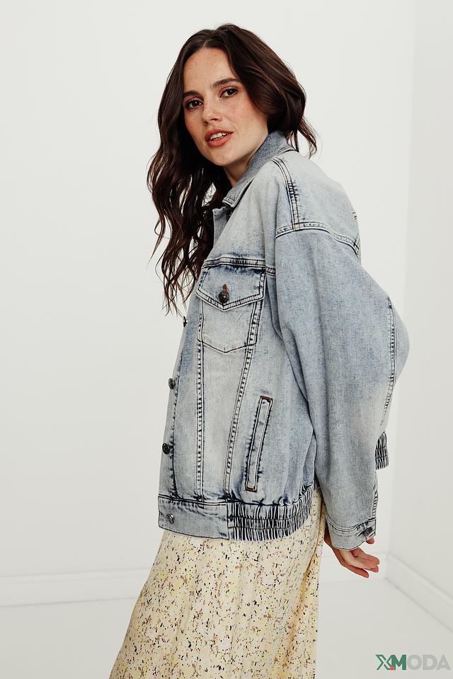 Модель имеет классический крой с отложным воротником и застежкой на пуговицы. Накладные карманы добавляют практичности. Жакет имеет слегка завышенную линию плеч и свободный силуэт, что делает его универсальным для создания различных образов.