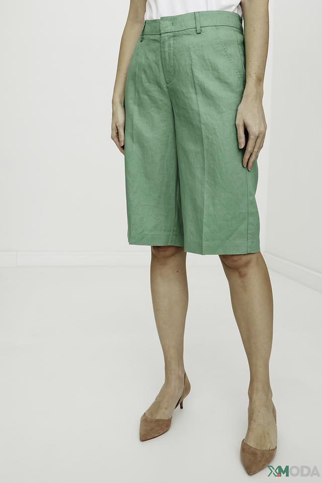 Женские шорты Oui мятного цвета выполнены из 100% льна. Модель прямого кроя с поясом и застёжкой на пуговицу, имеет боковые карманы и аккуратные складки спереди. Состав: лен 100%
