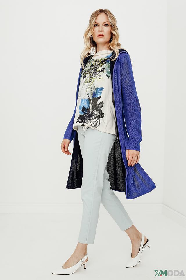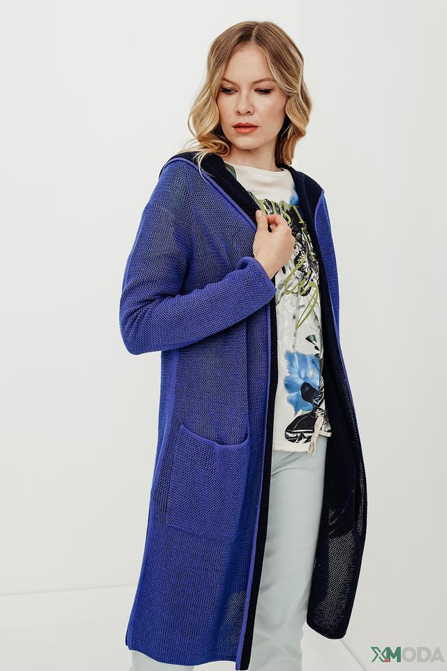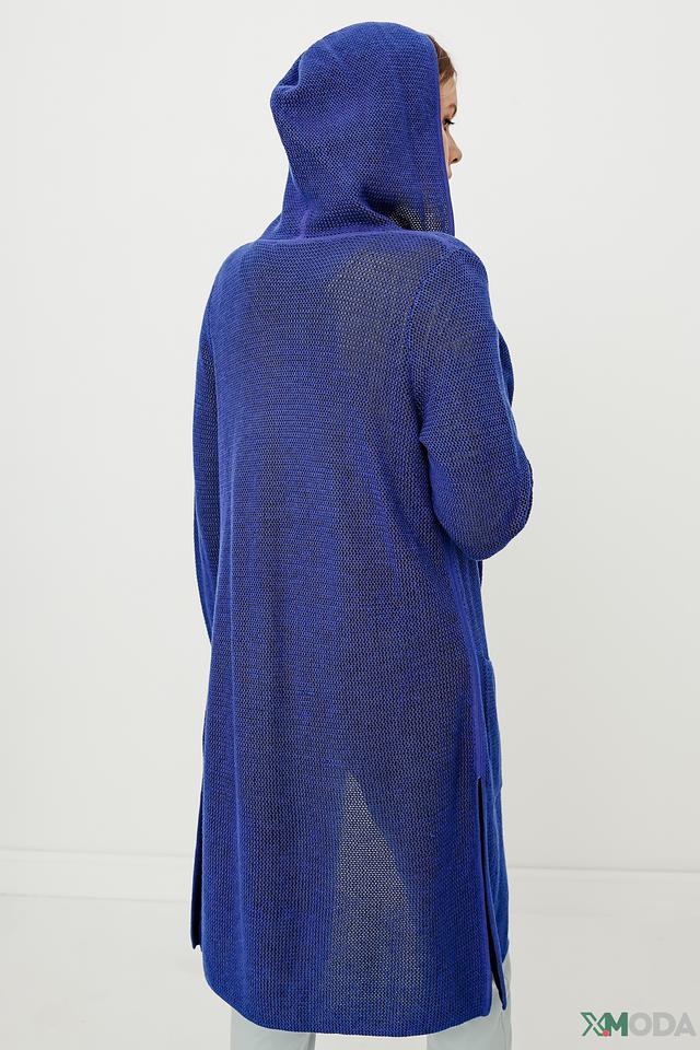 Кардиган Oui вязаный синий с капюшоном