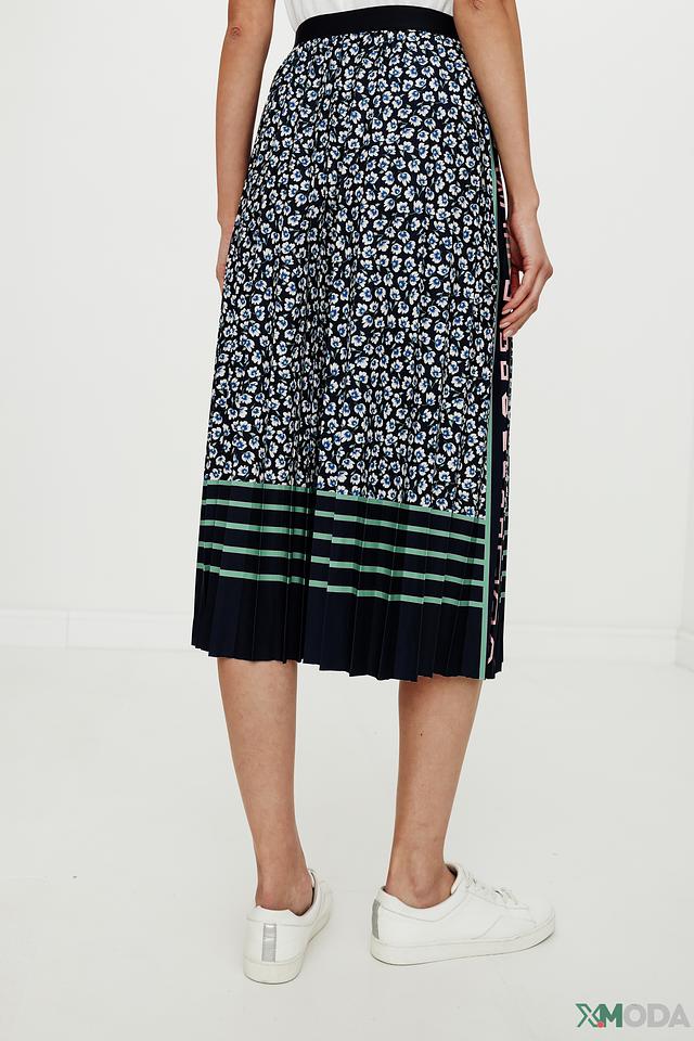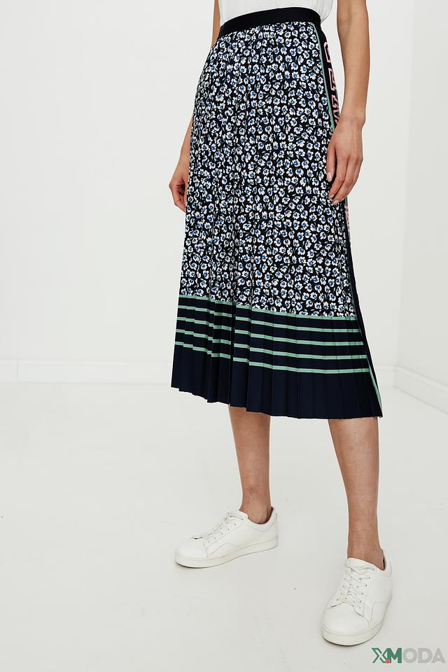 Юбка от Oui выполнена в темно-синем цвете с цветочным принтом и украшена надписью "OPTIMISM POWER". Плиссированная модель средней длины идеально подойдет для создания стильного и комфортного образа. Состав: полиэстер 92%, эластан 8%