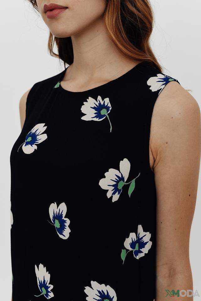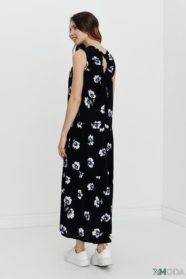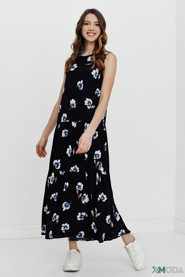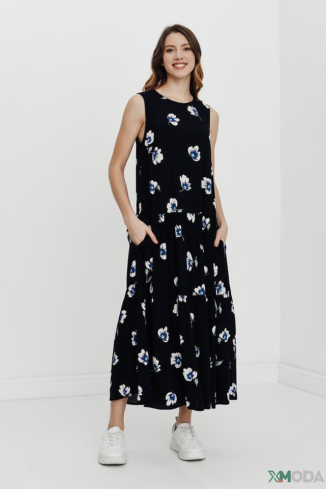 Модель имеет прямой силуэт, длину миди и удобные боковые карманы. Платье с круглым вырезом горловины и широкими бретелями, что обеспечивает комфортную посадку. Благодаря легкому и дышащему материалу – 100% вискозе – платье идеально подходит для теплой погоды.