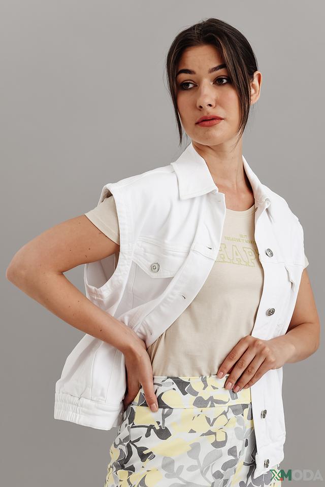 Белый джинсовый жилет — универсальный элемент гардероба, идеально подходящий для создания стильных и расслабленных образов. Выполнен из высококачественного хлопка с добавлением эластана, что обеспечивает комфортную посадку и свободу движений. Этот модный жилет станет отличным дополнением к летним и демисезонным нарядам, легко сочетаясь с платьями, юбками и брюками.
