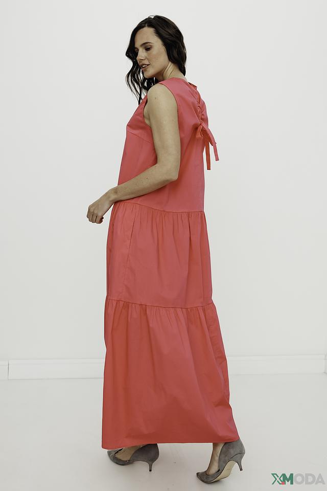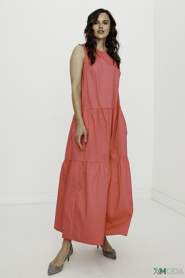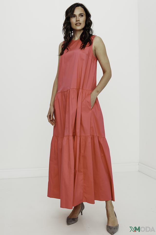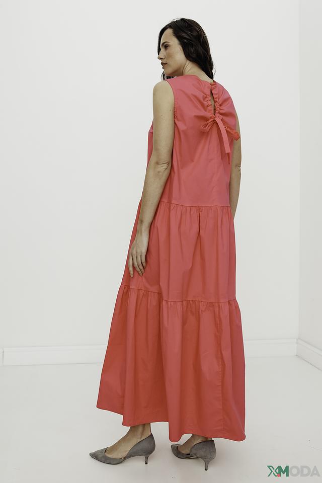 Платье имеет свободный крой, что обеспечивает комфорт в носке. Длина миди делает его универсальным для различных случаев. Сборки в нижней части создают эффект многослойности и придают платью лёгкость и воздушность.