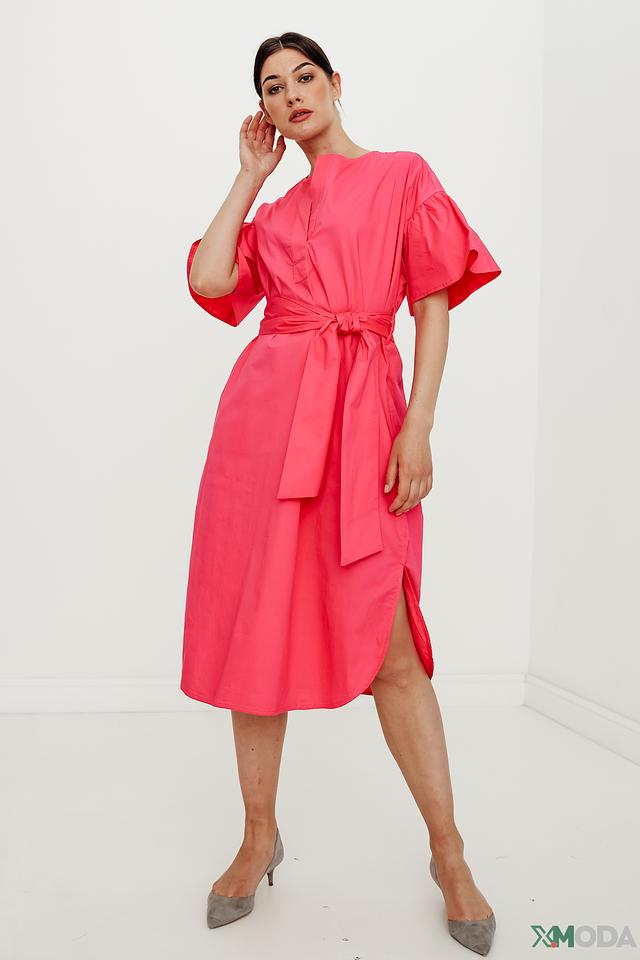 Платье от Oui яркого фуксиевого цвета выполнено из хлопка с добавлением эластана. Модель имеет свободный крой, рукава-фонарики и акцентный пояс, подчеркивающий талию. Состав: хлопок 95%, эластан 5%