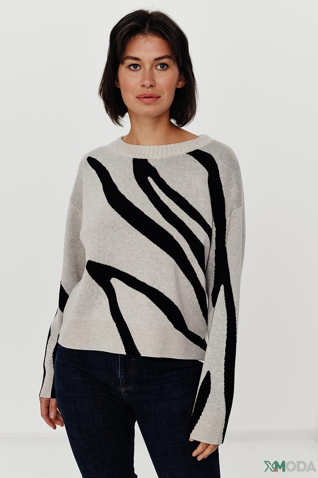Стильный пуловер Oui серого цвета с оригинальным чёрно-белым узором. Изготовлен из мягкого хлопка, обеспечивающего комфорт в носке. Идеально сочетается с джинсами и брюками. Состав: хлопок 100%