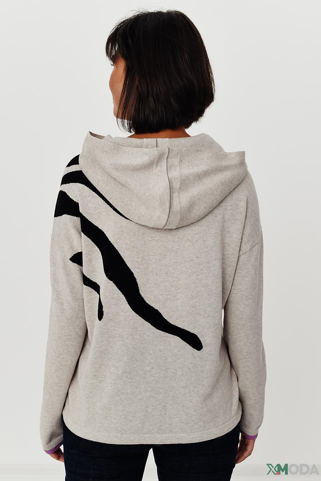Серая толстовка от Oui с оригинальным чёрно-белым принтом на спине. Удобный крой и мягкий хлопок делают эту модель идеальной для повседневной носки. Состав: хлопок 100%