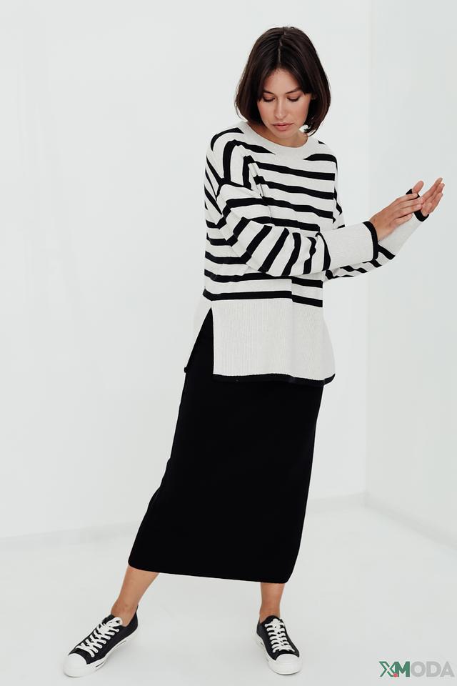 Модель изготовлена из высококачественного трикотажа, в состав которого входит 47% шерсть, 28% полиамид, 19% модал и 6% эластан. Благодаря этому сочетанию материалов юбка приятна к телу, хорошо держит форму и обеспечивает комфорт в течение всего дня.