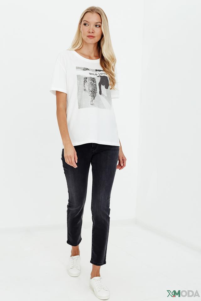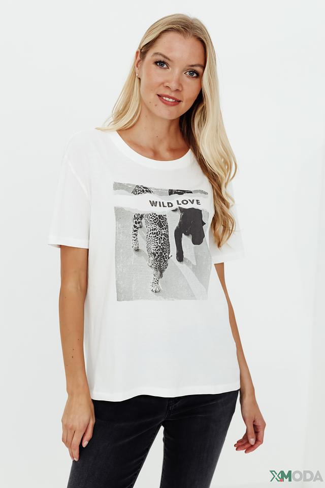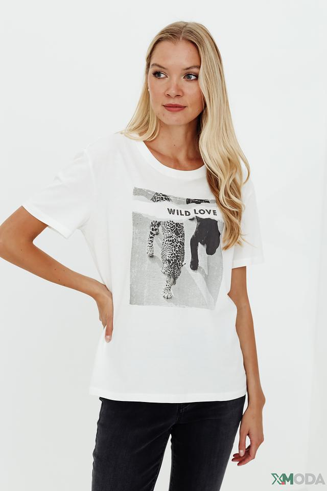 Белая футболка от Oui с эффектным принтом "Wild Love" в виде изображения леопарда и льва. Изготовлена из 100% хлопка, обеспечивающего комфорт и воздухопроницаемость. Состав: хлопок 100%