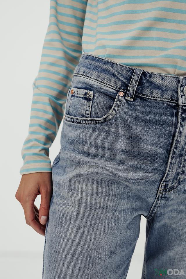 Женские джинсы Oui голубого цвета с высокой посадкой и прямым кроем. Модель выполнена в стиле casual с эффектом потертости и имеет классическую застежку на пуговицу. Состав: хлопок 98%, эластан 2%. Состав: хлопок 98%, эластан 2%