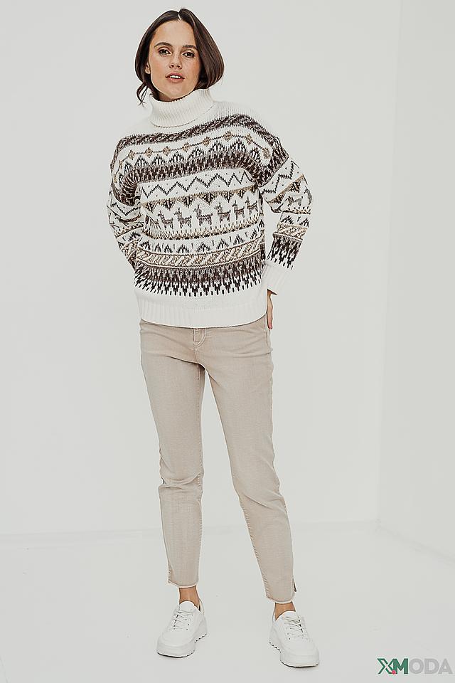 Эта водолазка от бренда Oui станет отличным дополнением к вашему гардеробу. Модель выполнена в кремовом цвете и украшена сложным жаккардовым узором в коричнево-серых тонах.