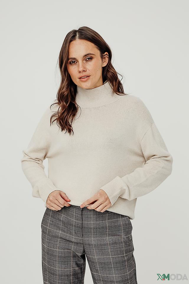 Пуловер Oui бежевый с горлом