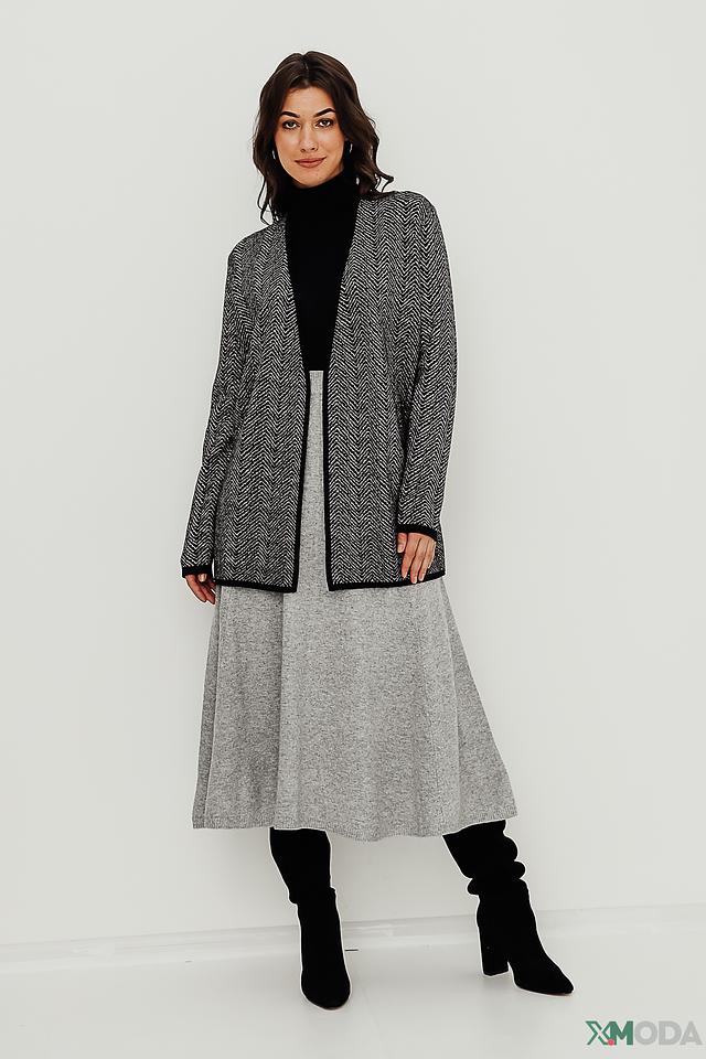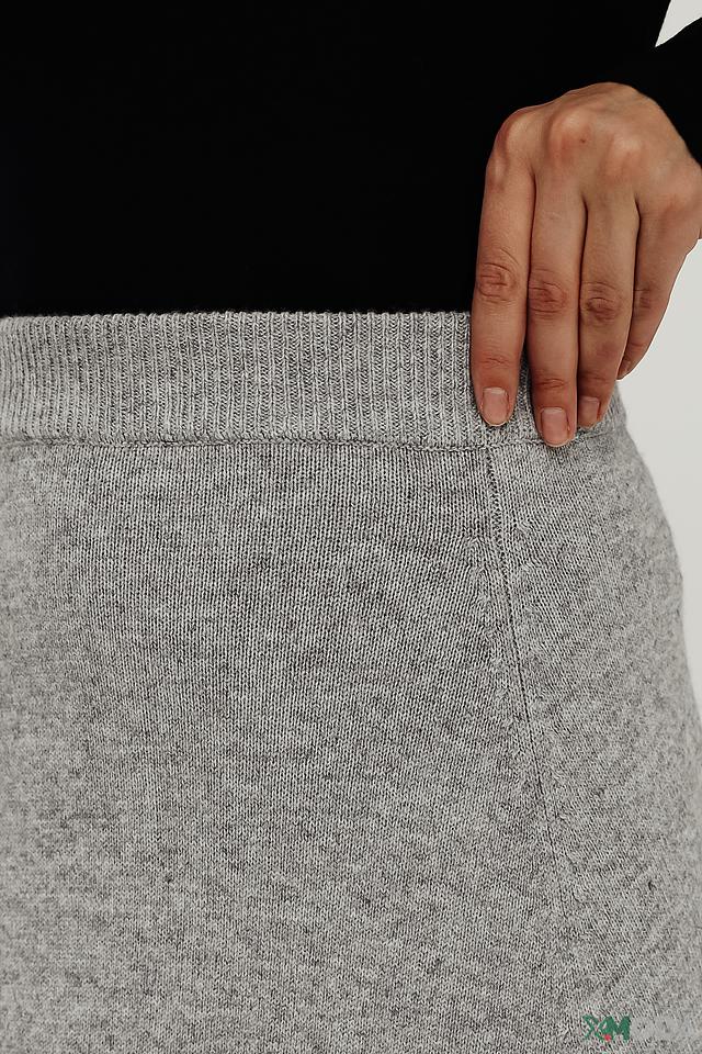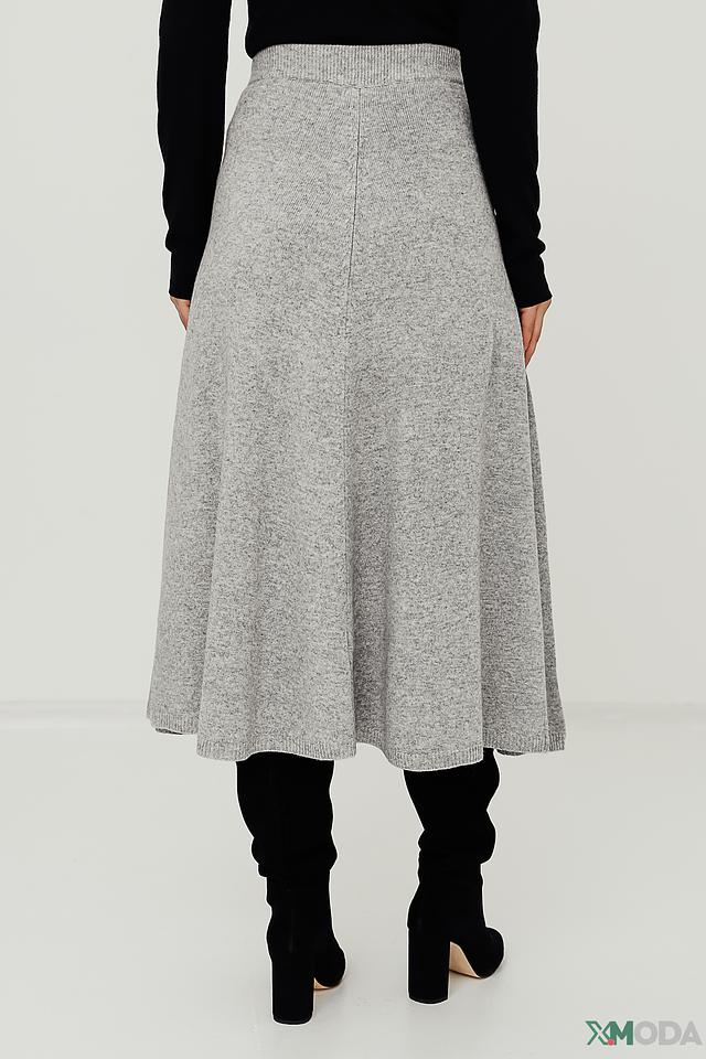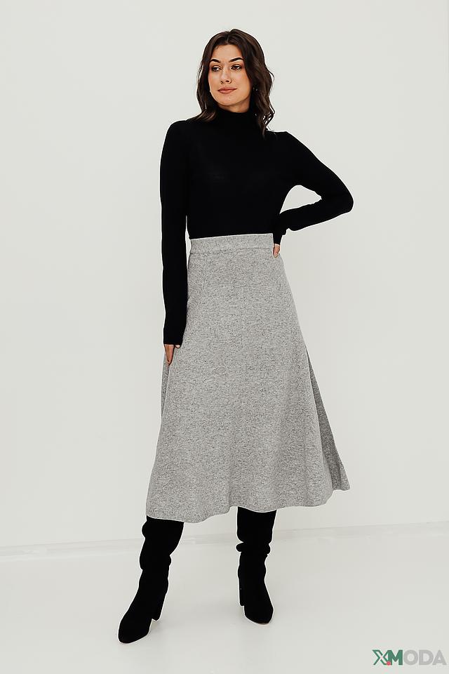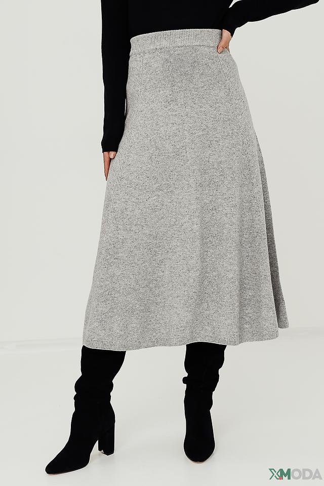 Юбка имеет классическую длину миди и слегка расклешенный силуэт, который подчеркивает женственность и элегантность. Эластичный пояс обеспечивает комфортную посадку по фигуре. Цвет юбки – серый меланж, который легко сочетается с различными элементами одежды.