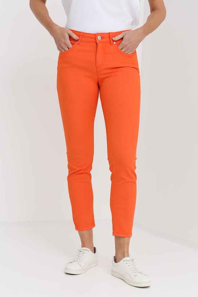 Представляем вашему вниманию стильные джинсы скинни от бренда Oui. Эта модель выполнена в ярком оранжевом цвете, который станет акцентным элементом вашего гардероба.