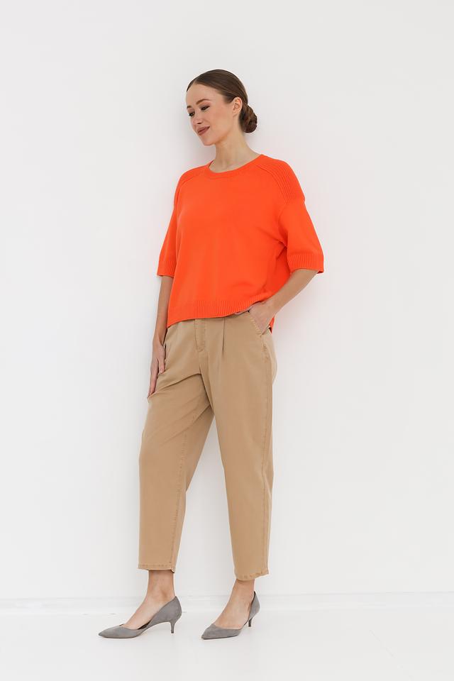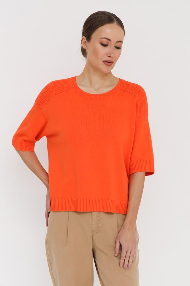 Оранжевый пуловер от Oui с короткими рукавами и круглым вырезом. Изготовлен из мягкого трикотажа с акцентной вязкой на плечах и рукавах, станет ярким акцентом в вашем образе. Состав: хлопок 55%, вискоза 25%, полиамид 20%
