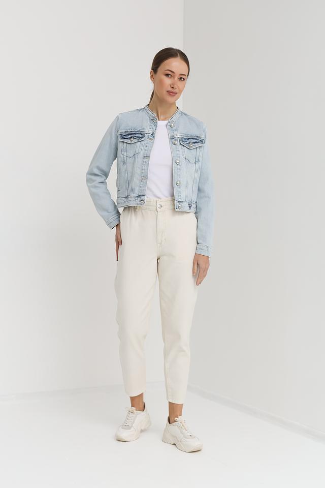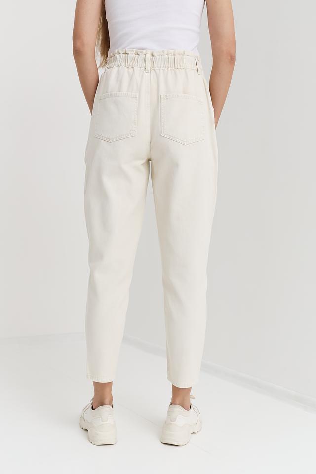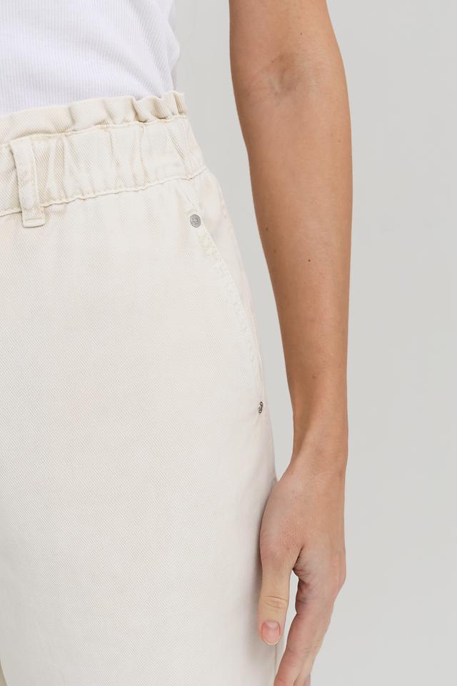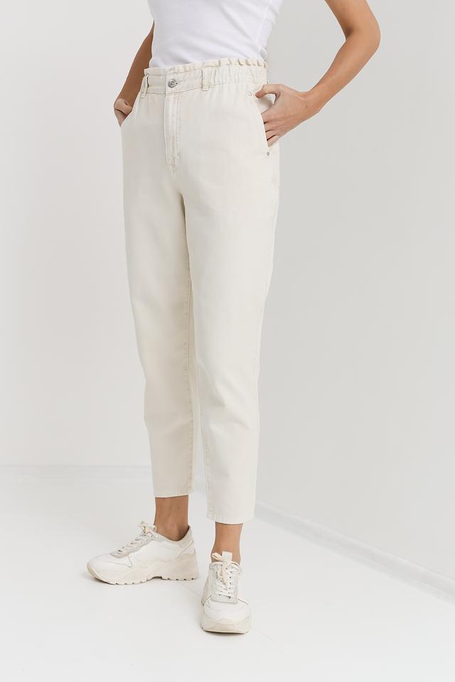 Женские джинсы Oui кремового цвета с высокой посадкой и эластичным поясом. Модель выполнена в свободном крое с укороченными штанинами и оформлена функциональными карманами. Состав: хлопок 100%