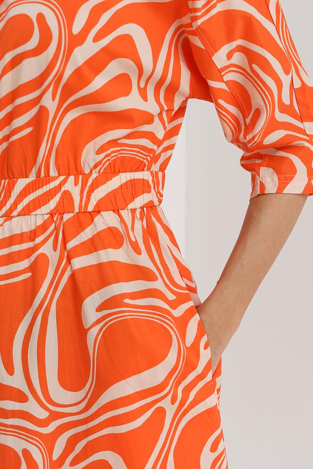 Платье от Oui оранжевого цвета с оригинальным волнистым принтом станет ярким акцентом вашего образа. Модель выполнена из 100% хлопка, что обеспечивает комфорт и удобство в носке. Состав: хлопок 100%