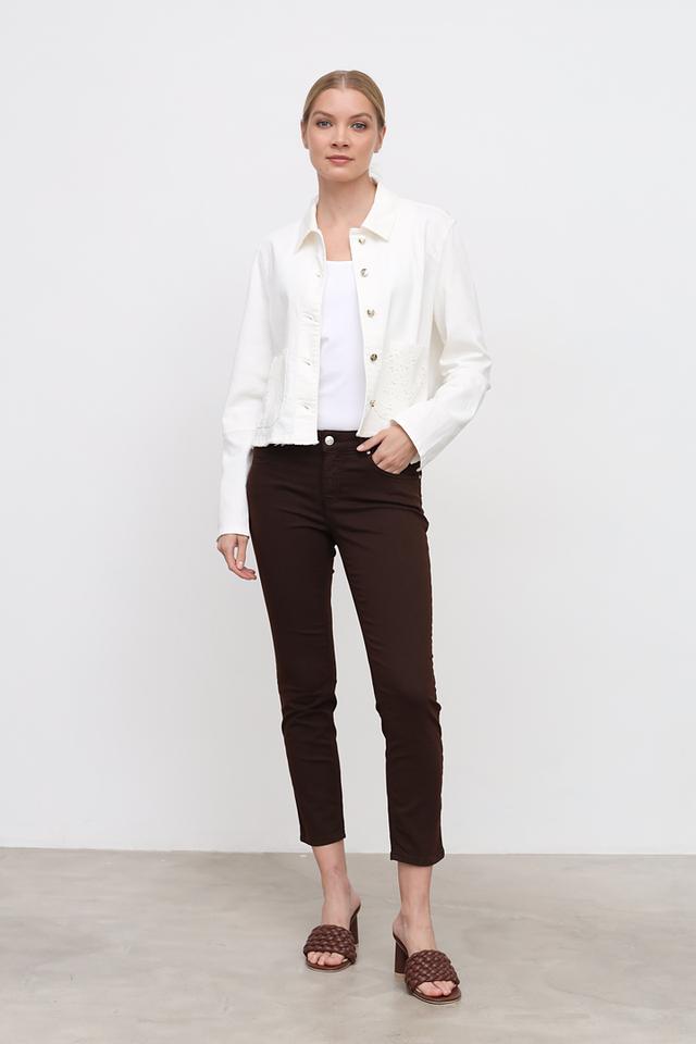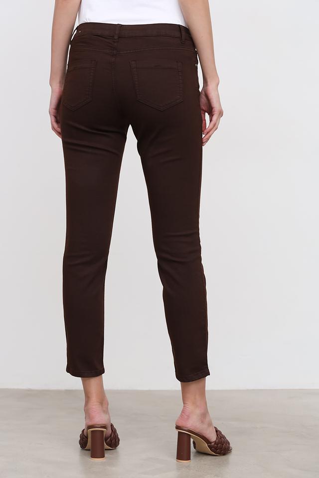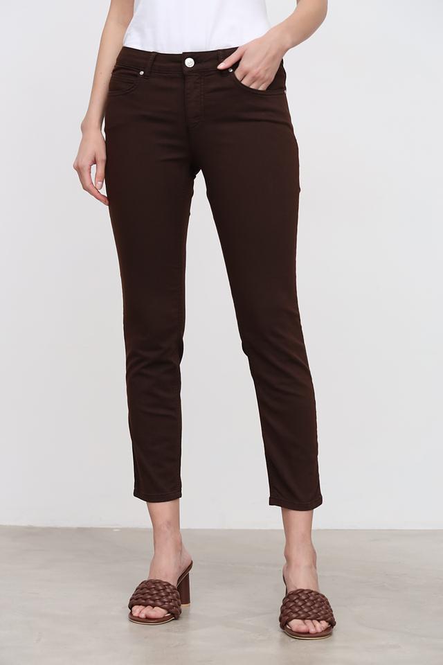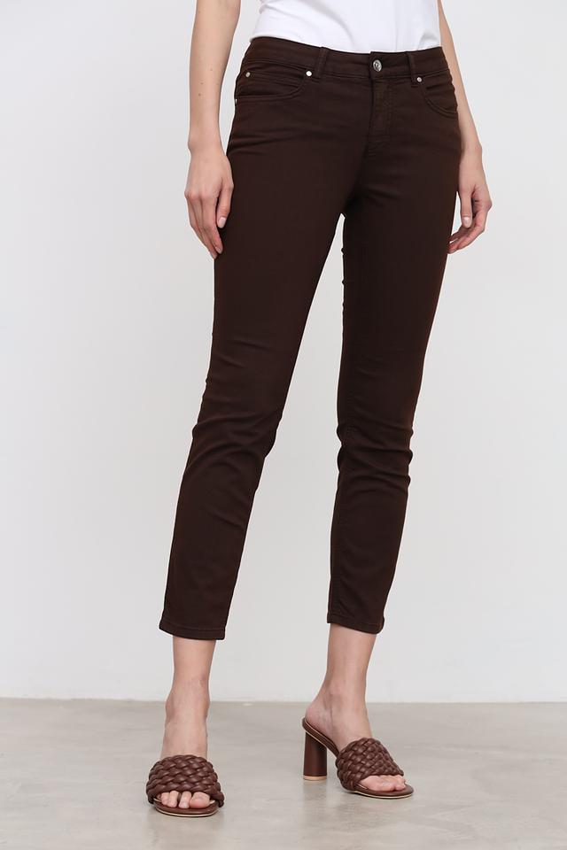Представляем вашему вниманию элегантные джинсы слим-фит от бренда Oui. Эта модель выполнена в глубоком коричневом цвете, который легко сочетается с различными элементами гардероба.