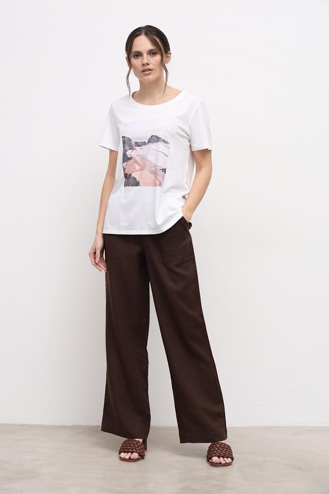 Брюки имеют прямой, слегка расклешенный крой, который обеспечивает свободу движений и создает элегантный силуэт. Эластичный пояс с кулиской позволяет регулировать посадку по фигуре, обеспечивая максимальный комфорт.