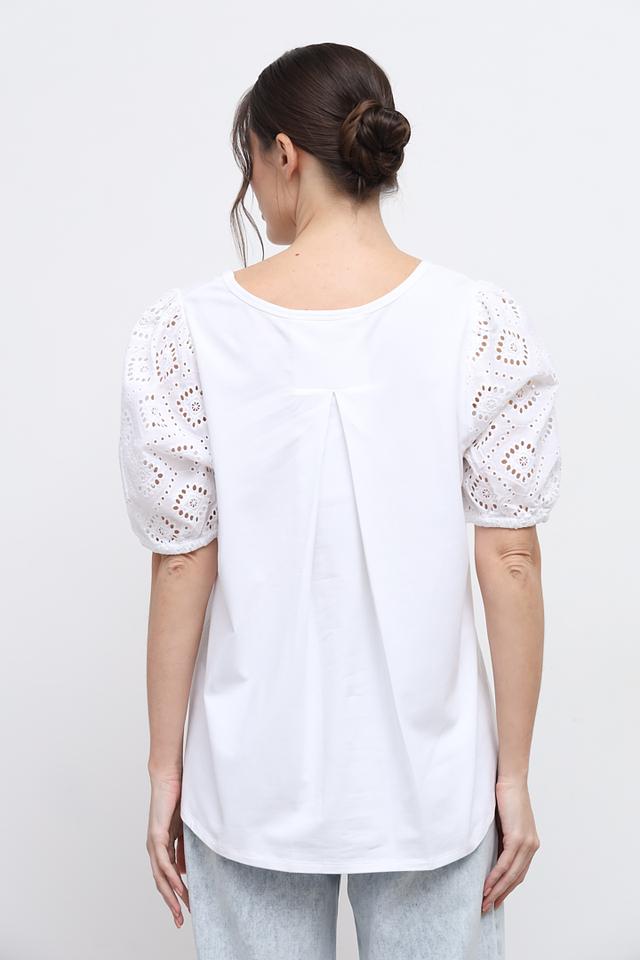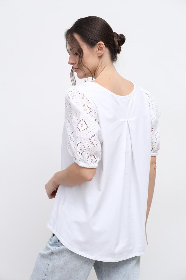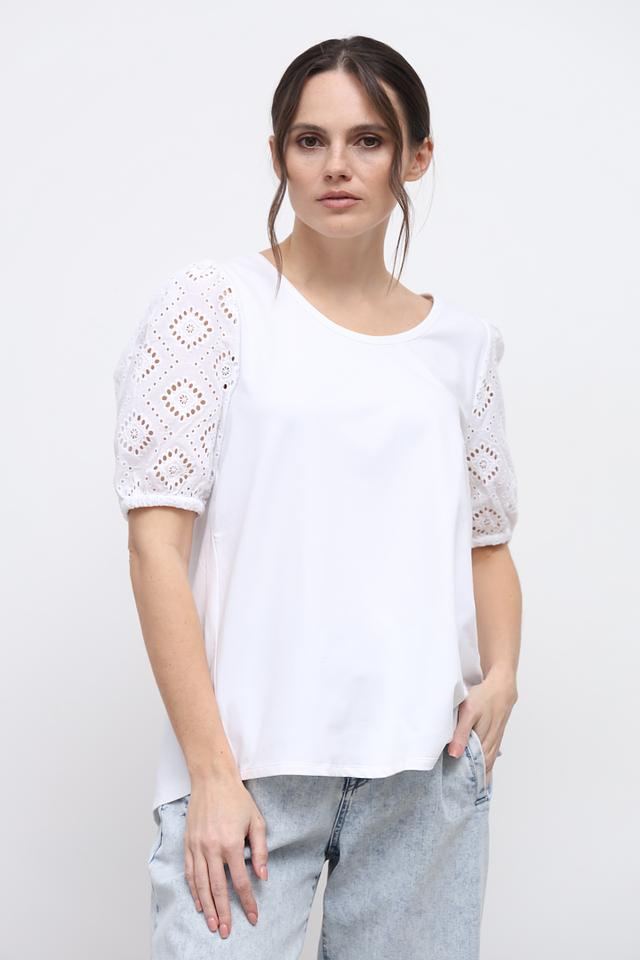 Белая футболка от Oui с изящными кружевными рукавами. Модель выполнена из мягкого хлопка с добавлением эластана для комфорта и свободы движений. Стильное и элегантное решение для повседневного образа. Состав: хлопок 95%, эластан 5%