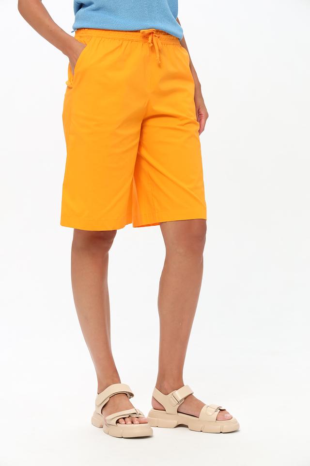 Женские шорты Oui оранжевого цвета – удобная и стильная модель с эластичным поясом и завязками. Шорты выполнены из мягкого хлопка с добавлением эластана, обеспечивающего комфорт при носке. Состав: хлопок 95%, эластан 5%