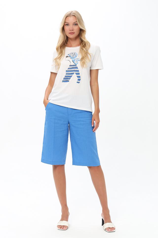 Белая футболка от Oui с оригинальным принтом в голубых тонах. Изготовлена из мягкого хлопка с модалом, обеспечивающего комфорт и приятные ощущения при носке. Стильный и удобный вариант для повседневного образа. Состав: хлопок 50%, модал 50%