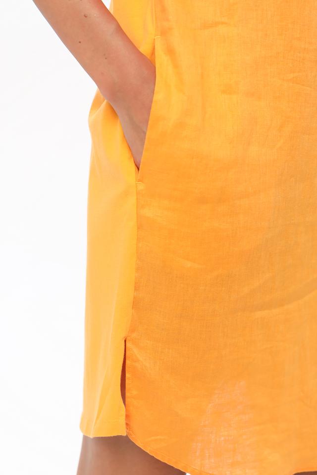 Это стильное платье от бренда Oui выполнено из 100% льна, что делает его легким, дышащим и приятным к телу. Преобладающий цвет – оранжевый, яркий и солнечный, идеально подходящий для летних образов.