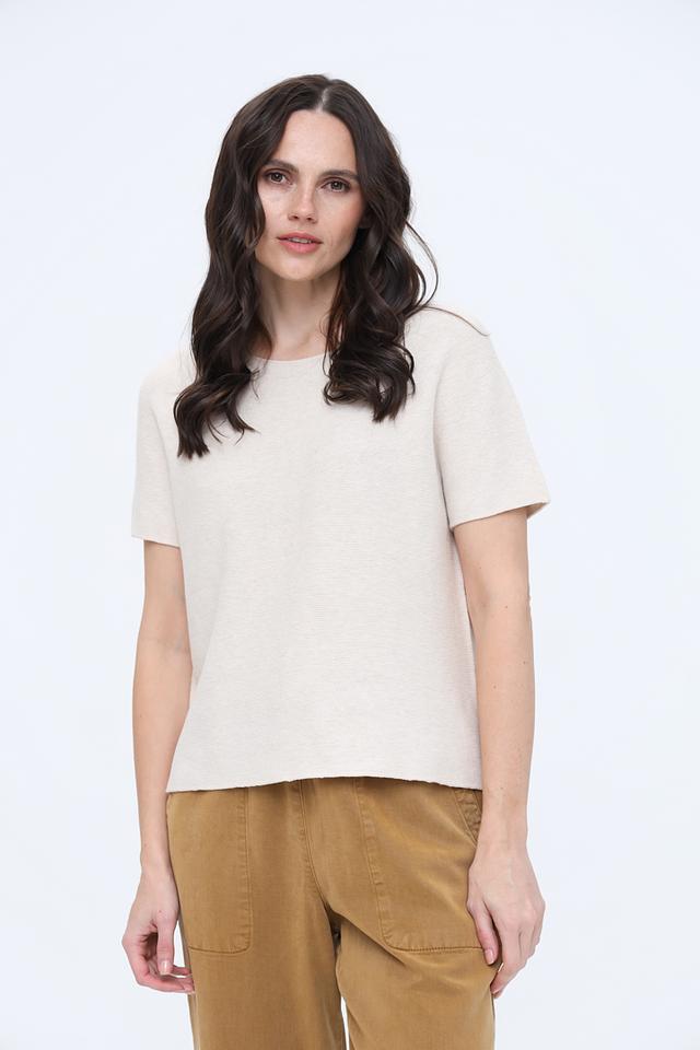 Бежевый пуловер от Oui с короткими рукавами и круглым вырезом – идеальный выбор для создания комфортного и стильного образа. Изготовлен из 100% хлопка, обеспечивающего мягкость и приятные ощущения при носке. Состав: хлопок 100%