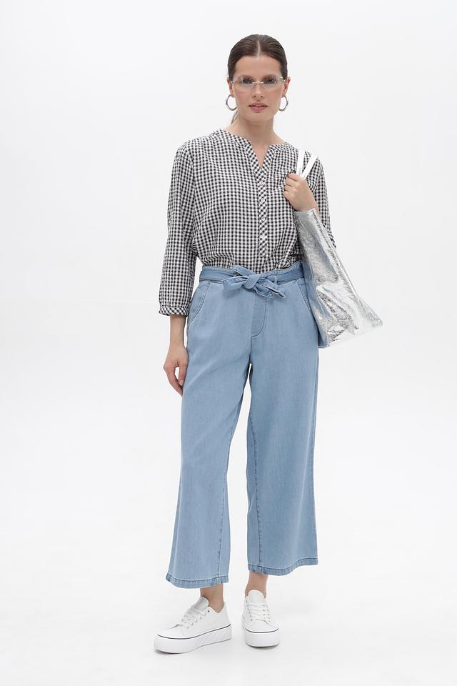Бриджи имеют удобную посадку благодаря эластичному поясу и завязкам, которые позволяют регулировать облегание. Практичные карманы добавляют функциональности. Укороченная длина делает модель актуальной и современной.