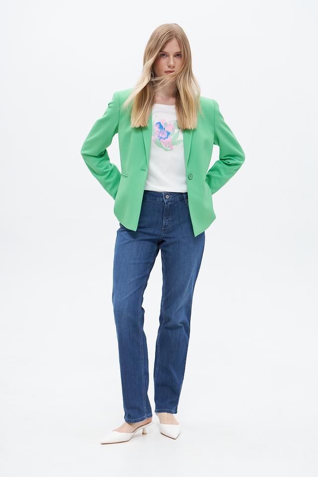 Джинсы имеют прямой крой и стандартную посадку, обеспечивающую комфорт в течение всего дня. Ткань состоит из 81% хлопка, 17% полиэстера и 2% эластана, что гарантирует удобство, износостойкость и небольшую эластичность.