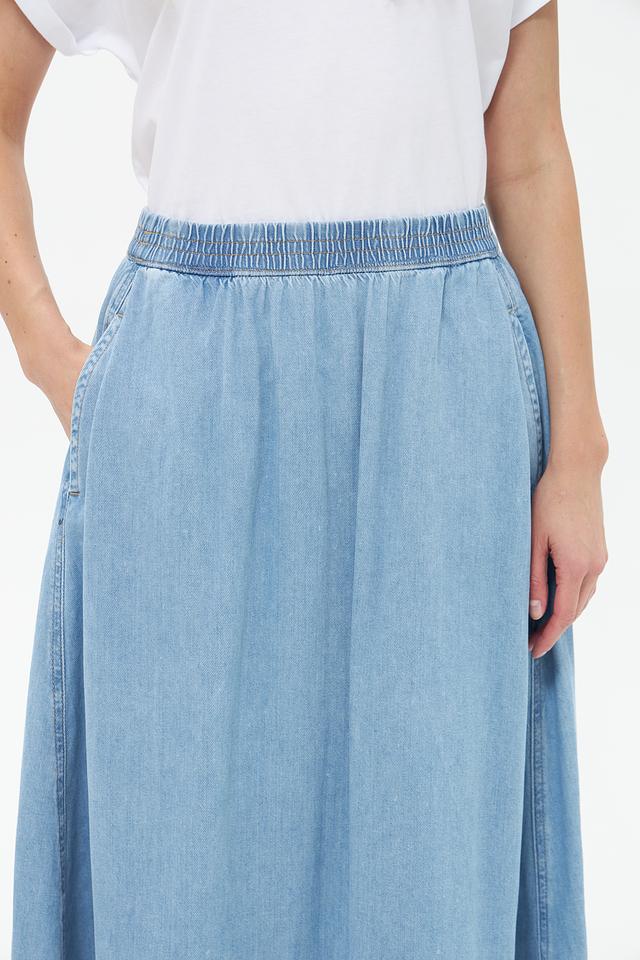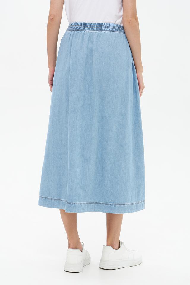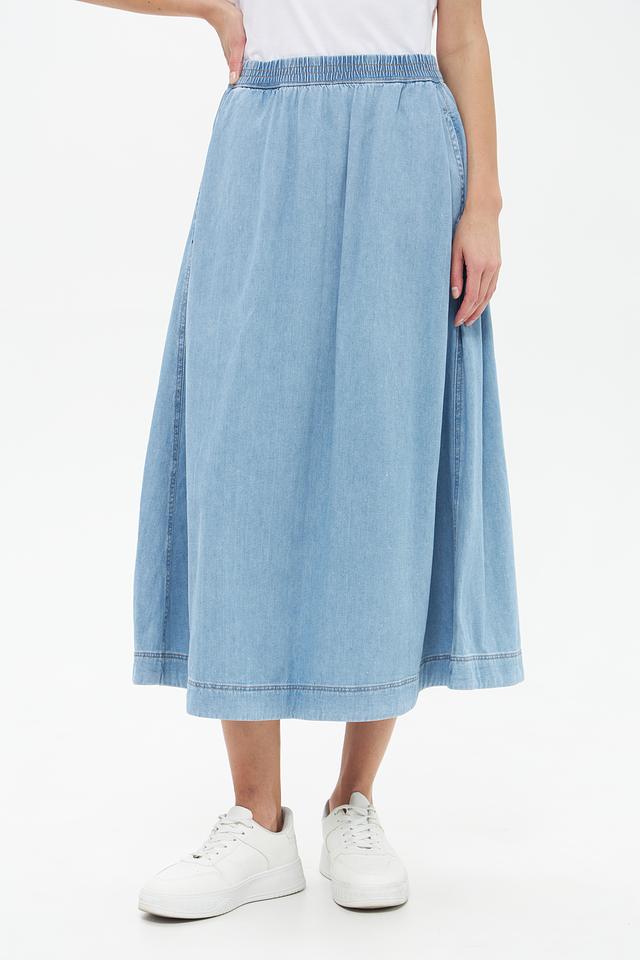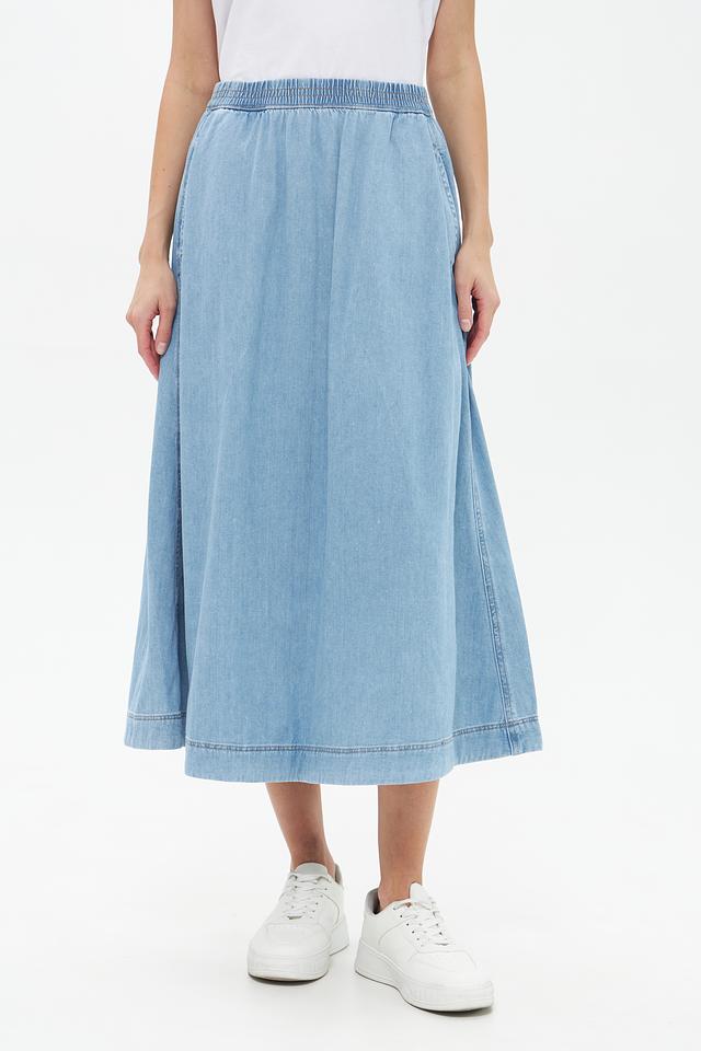 Юбка Paddocks светло-голубого цвета выполнена из денима с эластичным поясом и боковыми карманами. Эта модель станет отличным дополнением к вашему повседневному гардеробу, сочетая в себе комфорт и стиль. Состав: хлопок 67%, тенсель 33%