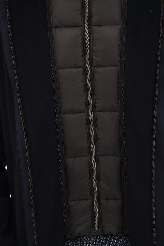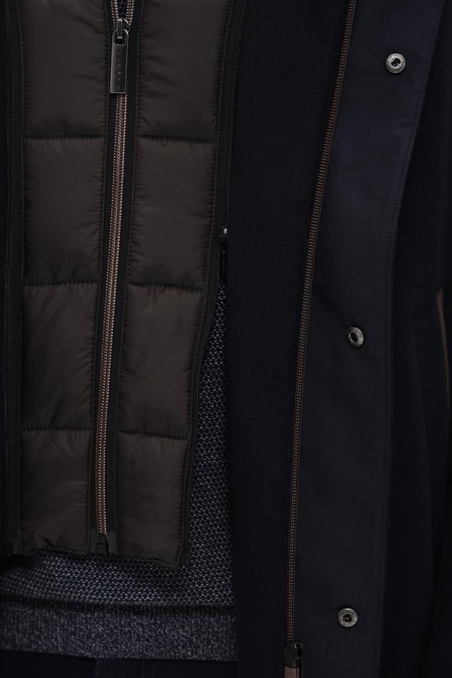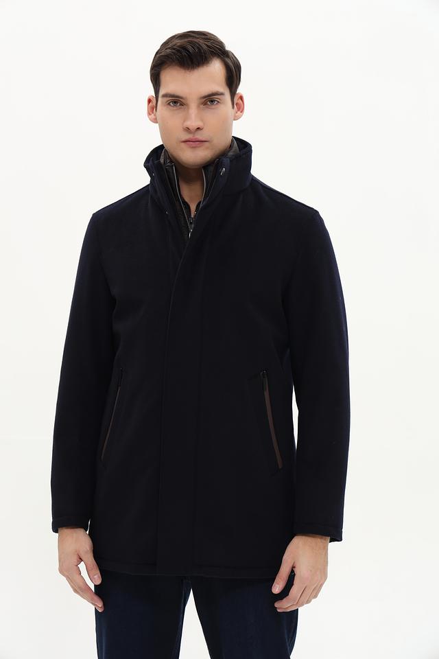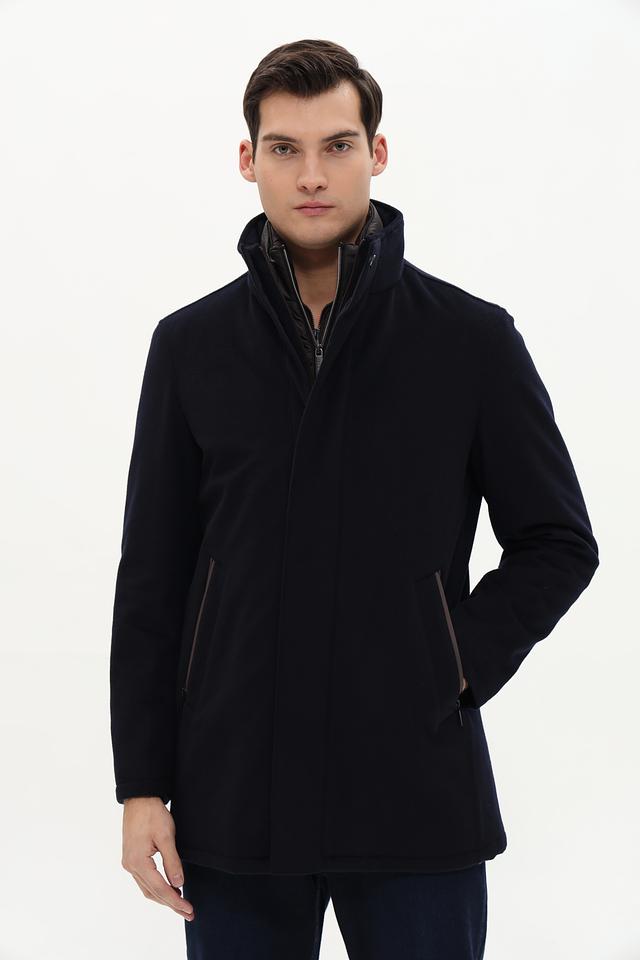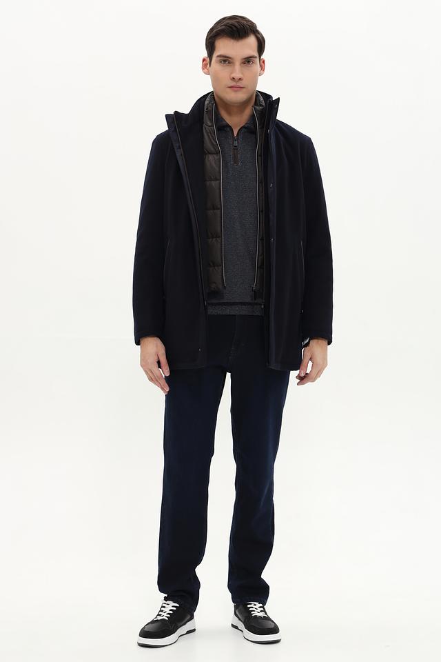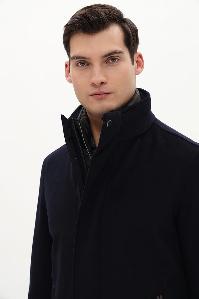 Пальто Bugatti – это элегантная верхняя одежда для мужчин, выполненная в классическом стиле. Преобладающий цвет пальто – тёмно-синий, что делает его универсальным и подходящим для различных образов.