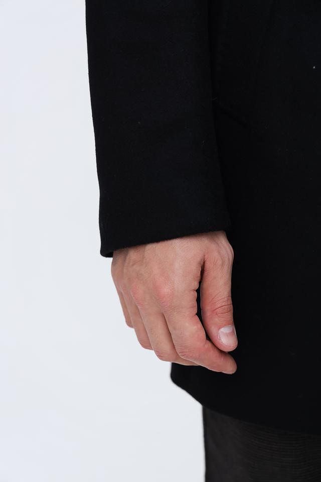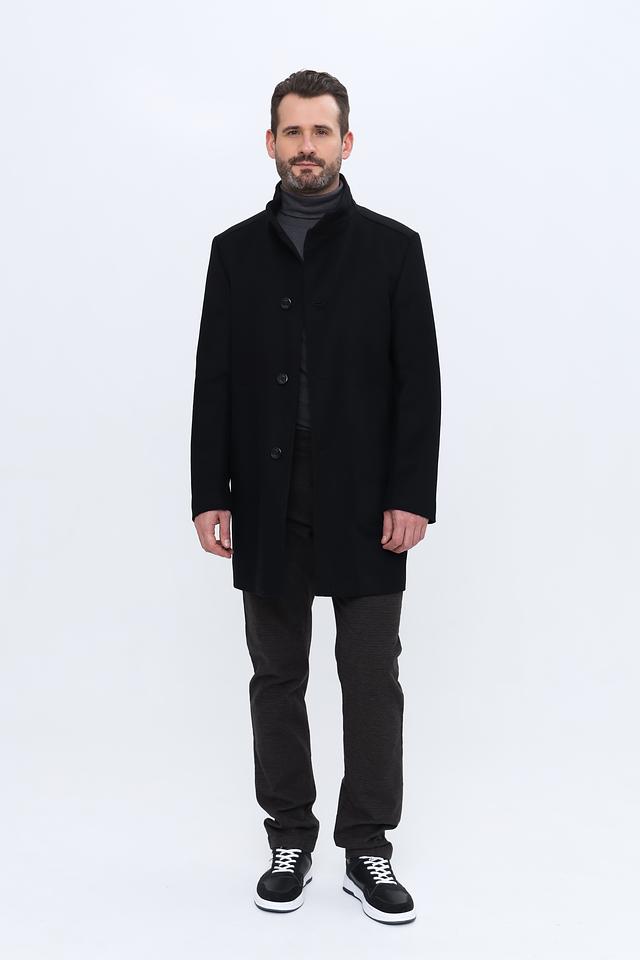 Пальто имеет приталенный силуэт, который подчеркивает фигуру. Застежка на три пуговицы обеспечивает надежную фиксацию и защиту от ветра. Воротник-стойка добавляет образу изысканности.