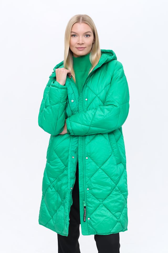 Пальто от Oui – это идеальный выбор для тех, кто ценит комфорт и стиль. Данная модель выполнена в ярком зелёном цвете и имеет стеганую фактуру, которая придает ей современный вид.