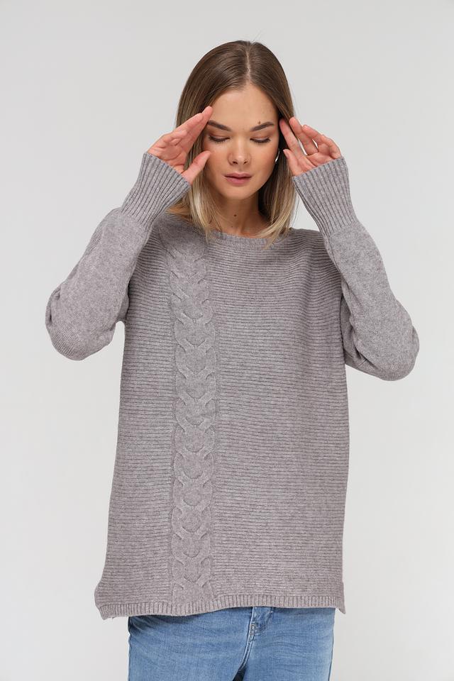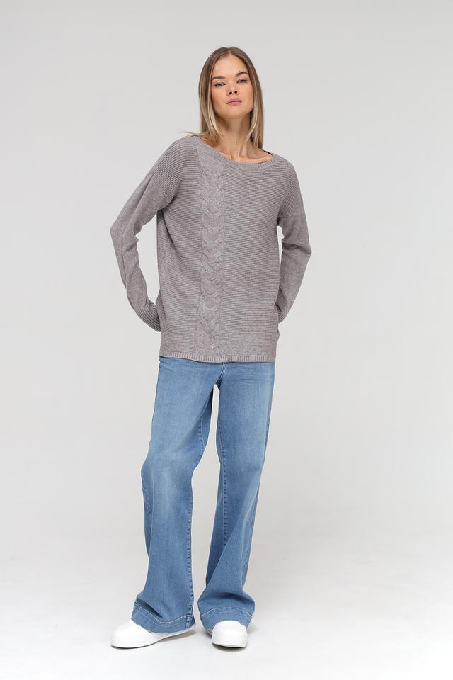 Модель имеет свободный крой, который не сковывает движений и обеспечивает комфорт в носке. Особый акцент сделан на текстурном плетении с косами, которое придает пуловеру оригинальность и визуальный интерес.