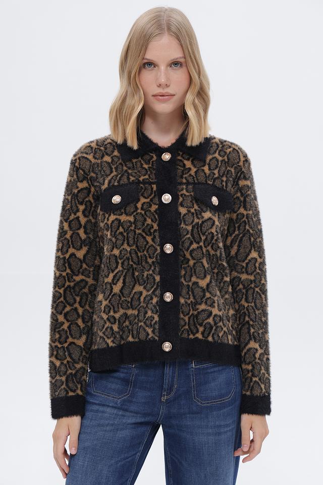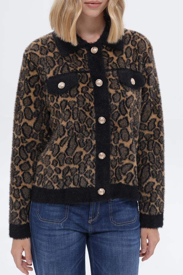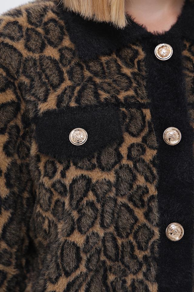 Жакет Passioni коричневого цвета с леопардовым принтом – стильная и уютная модель на пуговицах. Изготовлен из мягкого полиэстера, идеально подходит для создания модных образов. Состав: полиэстер 100%