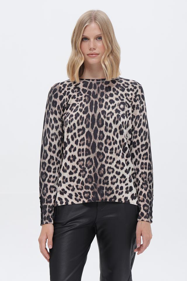 Элегантный пуловер от бренда Passioni станет ярким акцентом вашего образа. Модель выполнена в бежевых тонах с эффектным леопардовым принтом, который добавит образу динамичности.