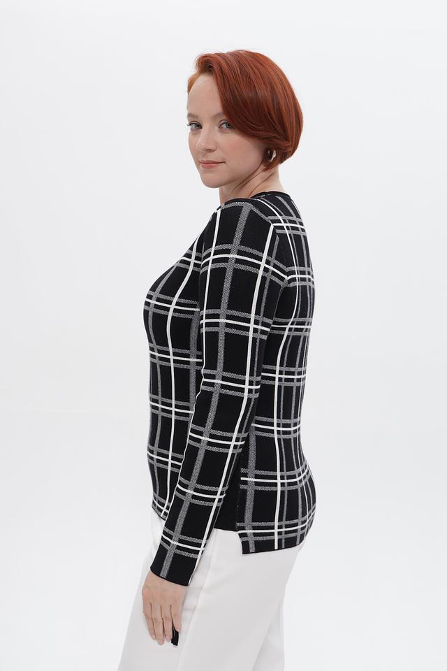 Представляем вашему вниманию элегантный пуловер от бренда Passioni. Эта модель выполнена в классической черно-белой клетке, что делает её универсальным дополнением к вашему гардеробу.