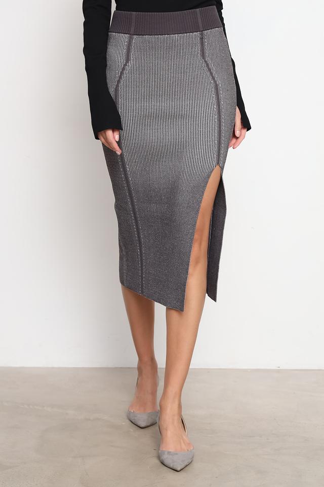 Модель имеет приталенный крой и длину миди, а также стильный разрез сзади, добавляющий образу динамичности. Эластичный пояс обеспечивает комфортную посадку по фигуре.
