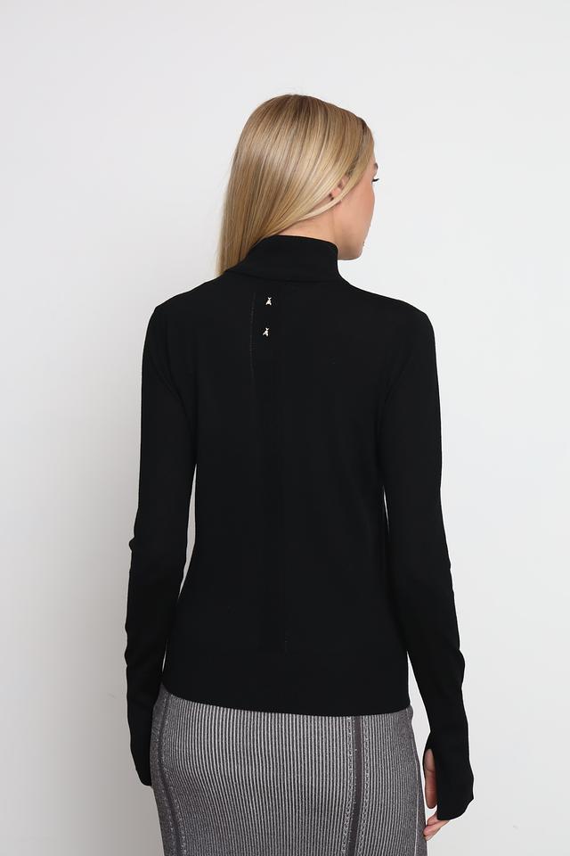 Чёрная водолазка Patrizia Pepe из 100% шерсти – это элегантная и теплая база для создания стильных образов. Приталенный силуэт и длинные рукава с разрезами придают модели особый шарм и современный вид. Состав: шерсть 100%