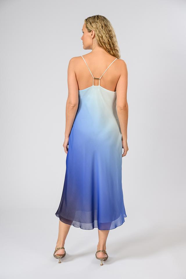 Длина платья миди делает его универсальным вариантом для различных случаев – от повседневной носки до вечерних мероприятий. Градиентный эффект создает визуальный интерес и делает это платье по-настоящему уникальным элементом вашего гардероба.