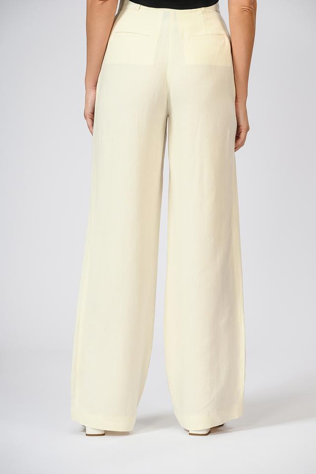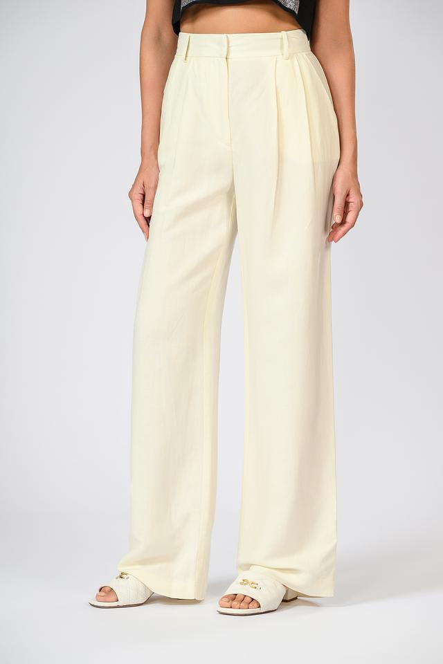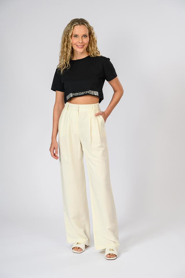 Кремовые брюки палаццо от Patrizia Pepe — элегантная модель прямого кроя с завышенной талией. Брюки выполнены из лёгкой ткани на основе вискозы и льна, что обеспечивает комфорт в жаркую погоду. Состав: вискоза 51%, лен 49%