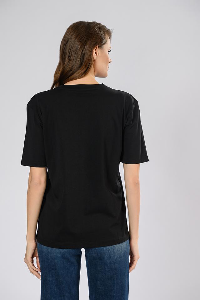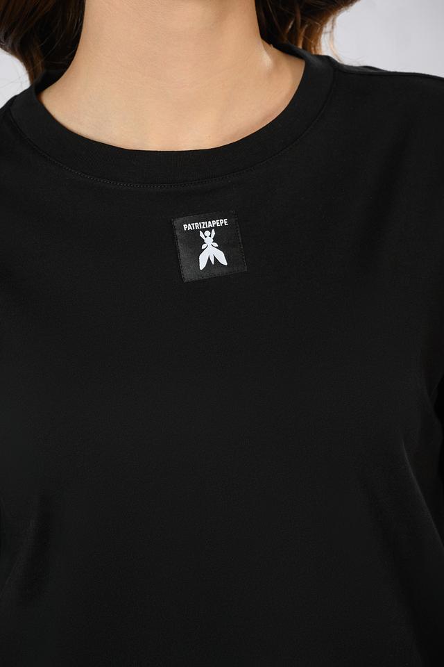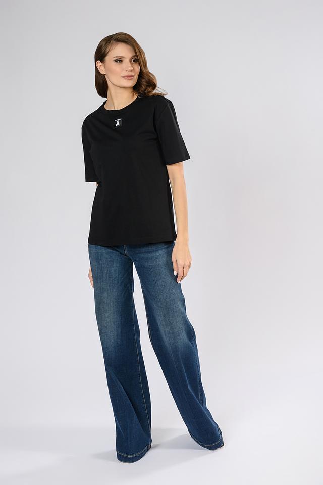 Чёрная футболка Patrizia Pepe из 100% хлопка с небольшим логотипом на груди. Классический крой и мягкий материал обеспечивают комфорт в повседневной носке. Состав: хлопок 100%