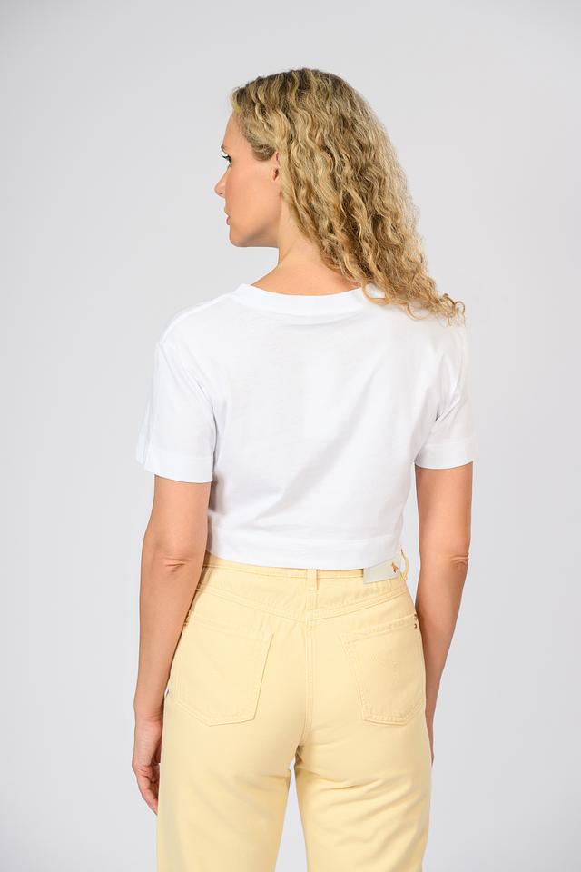 Эта укороченная футболка от Patrizia Pepe станет отличным дополнением к вашему летнему гардеробу. Модель выполнена из высококачественного 100% хлопка, обеспечивающего комфорт и воздухопроницаемость.