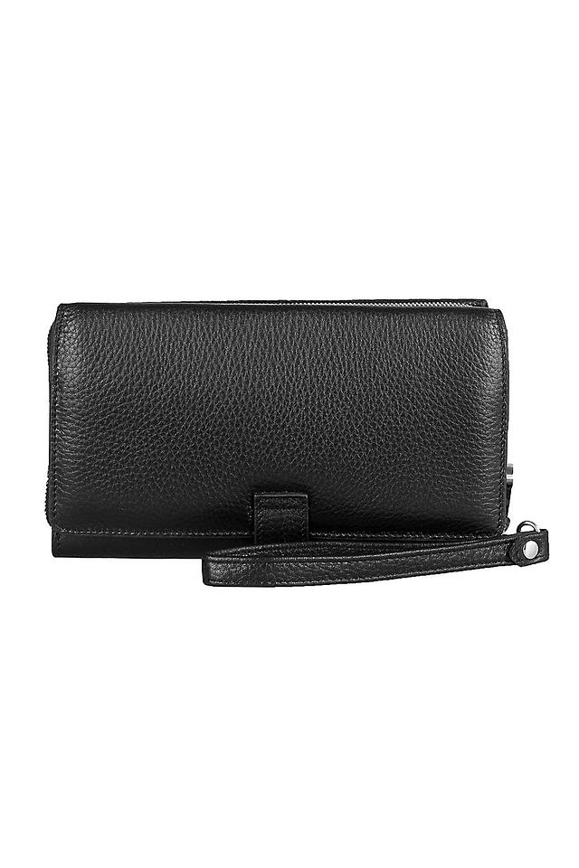 Текстурированная поверхность кожи придает клатчу особый шарм и делает его приятным на ощупь. Чёрный цвет делает его универсальным дополнением к любому образу.