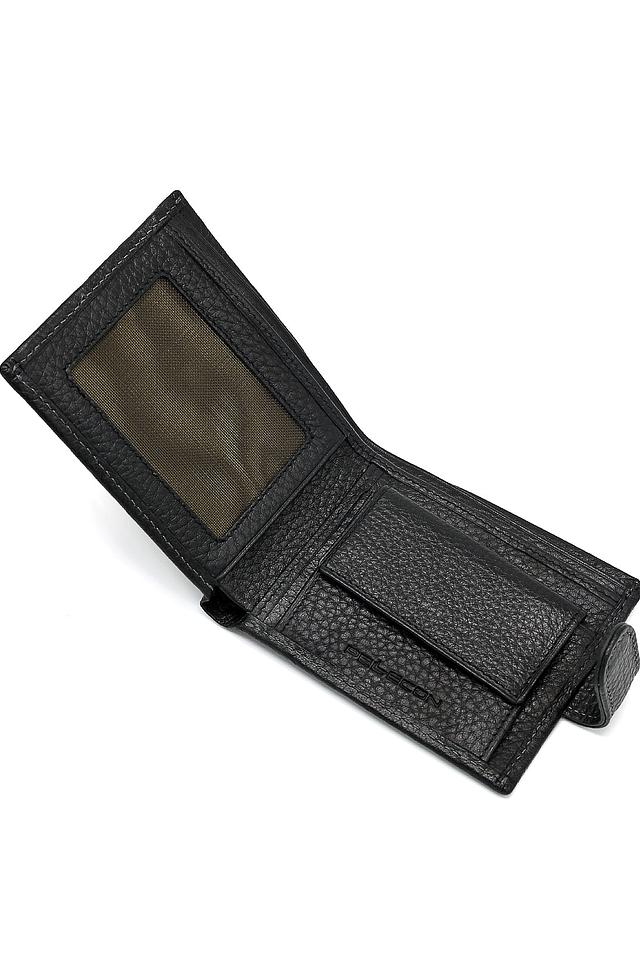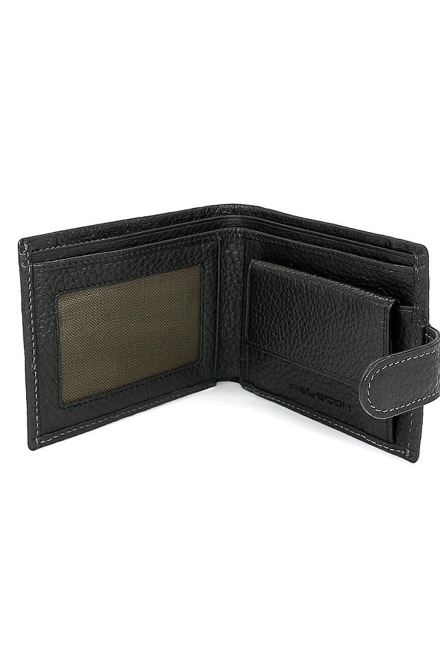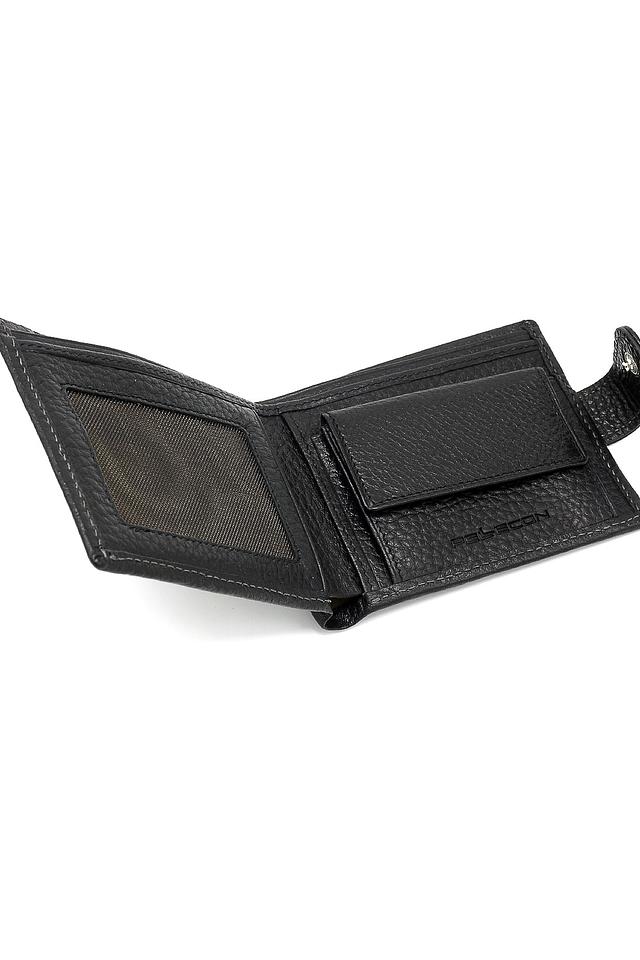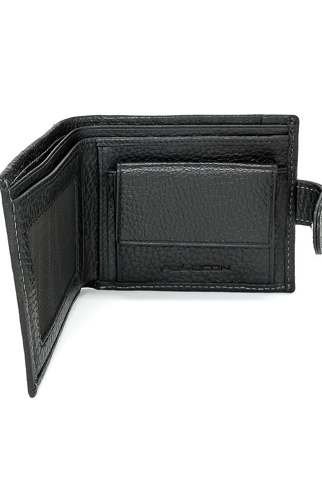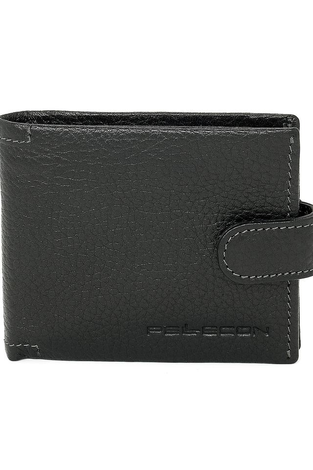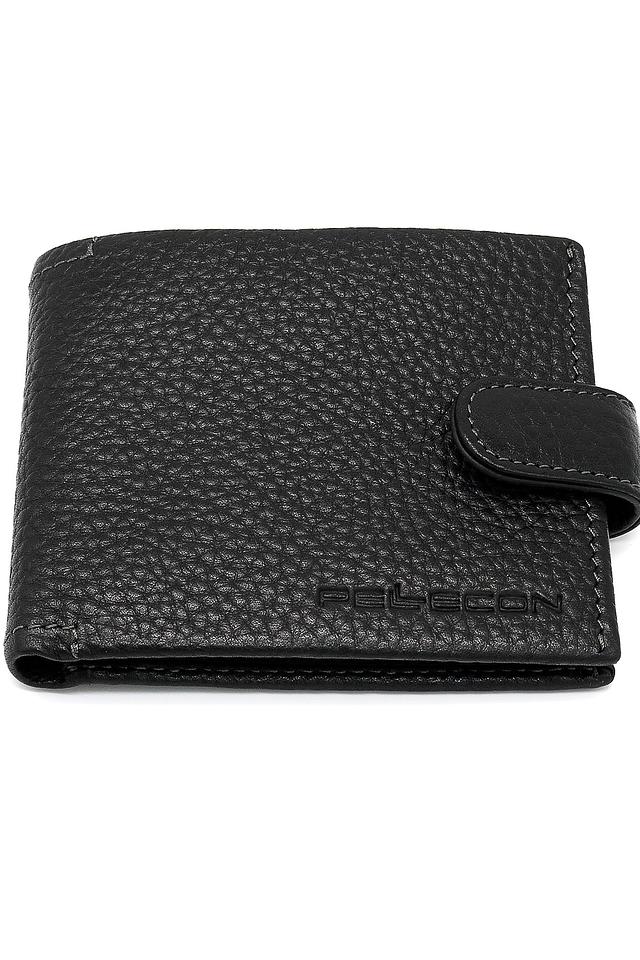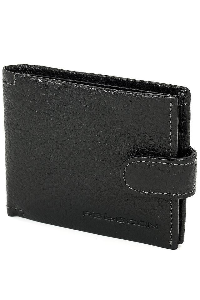 Чёрный мужской кошелек Pellecon из натуральной кожи с удобным клапаном на кнопке. Компактный и функциональный аксессуар для повседневного использования. Состав: кожа 100%, Состав_подкладка текстиль 100%