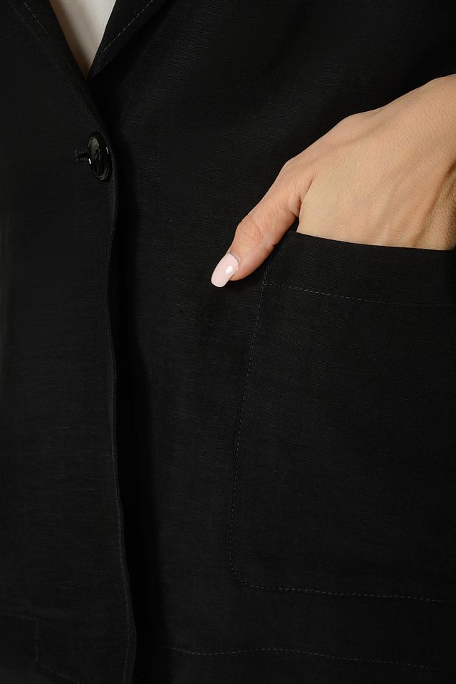 Чёрный жакет Penny Black Black женского кроя – стильная и универсальная модель на пуговице. Жакет выполнен из вискозы и льна, что обеспечивает комфорт и воздухопроницаемость. Идеально дополнит как повседневный, так и деловой гардероб. Состав: вискоза 62%, лен 38%